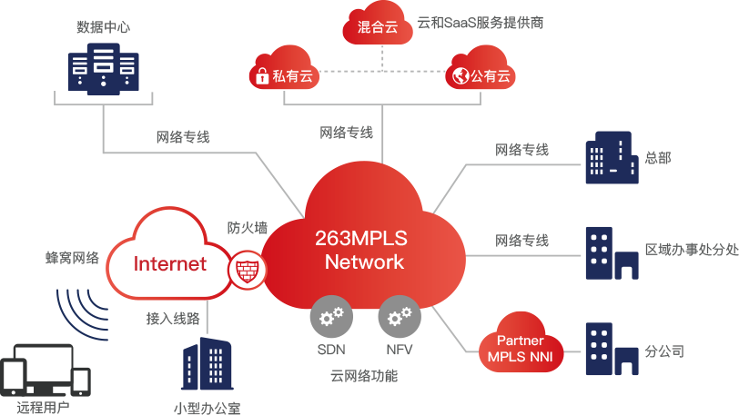 采用多协议标签交换( MPLS)技术、最新的分段路由和EVPN技术等,为企业提供包含虚拟专网、企业专线、SD-WAN、混合云网络等服务的一整套解决方案。依托安全、可靠、稳定、开放的企业网络基础架构,263虚拟专网服务可帮助跨国企业实现全球组网,通过低延迟骨干网缩短企业关键办公应用的访问延迟,助企业打造具备全球互联网通信能力的云上网络。